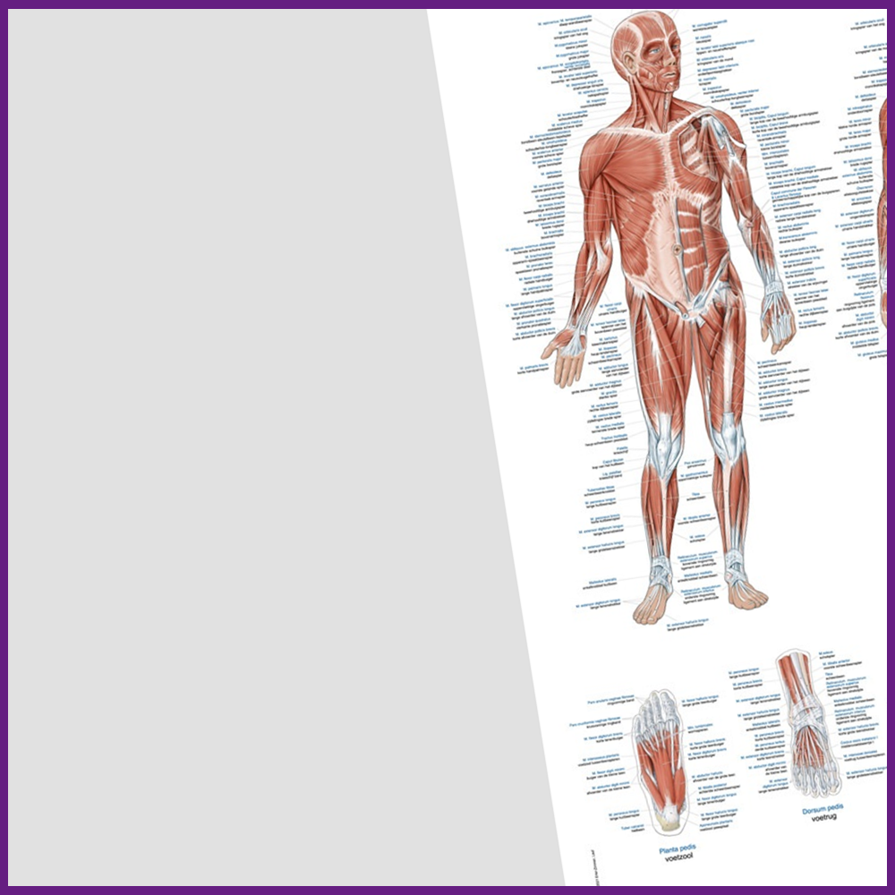 Anatomie poster spieren (Nederlands/Latijn, papier, 50x70 cm) + ophangsysteem