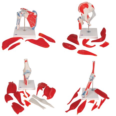Anatomie model gewrichten met spieren (schouder, heup, knie, elleboog)
