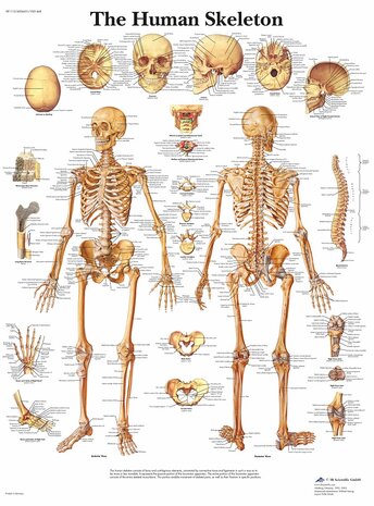 Deze anatomie poster van het skelet is volledig gelamineerd (Engels, 50x67cm). Afbeeldingen van: